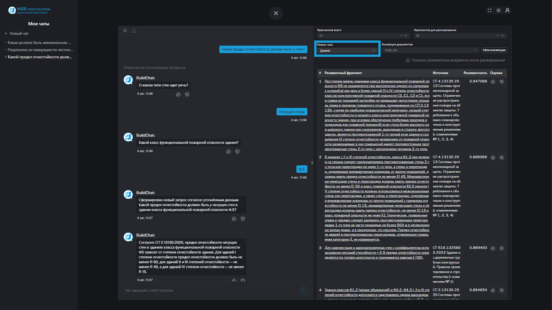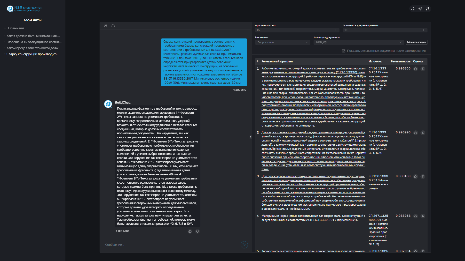 Ответы формируются на основе нормативных документов с возможностью проверки источников и перехода в NSR Модуль требований