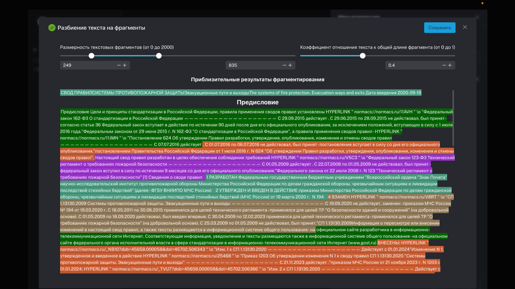 Предусмотрена проверка и коррекция извлеченного текста, настройка границ фрагментов по размеру для последующего анализа