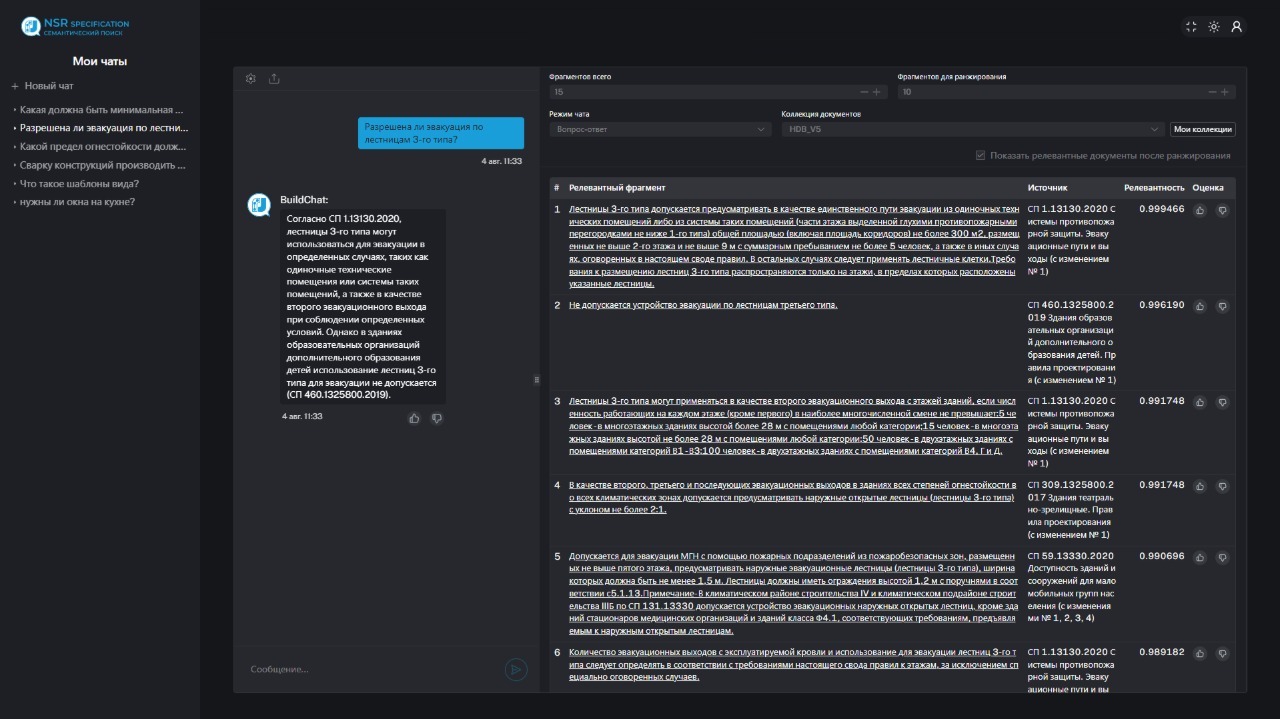 При обработке запроса пользователя происходит мгновенный поиск фрагментов норм и стандартов, которые могут содержать ответ, а дальше ИИ анализирует их согласно установленному сценарию (промпту), что обеспечивает уменьшение галлюцинаций.
