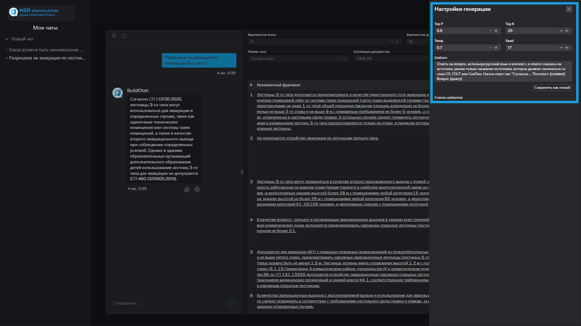 Генерация ответа на основе реальных фрагментов нормативных документов